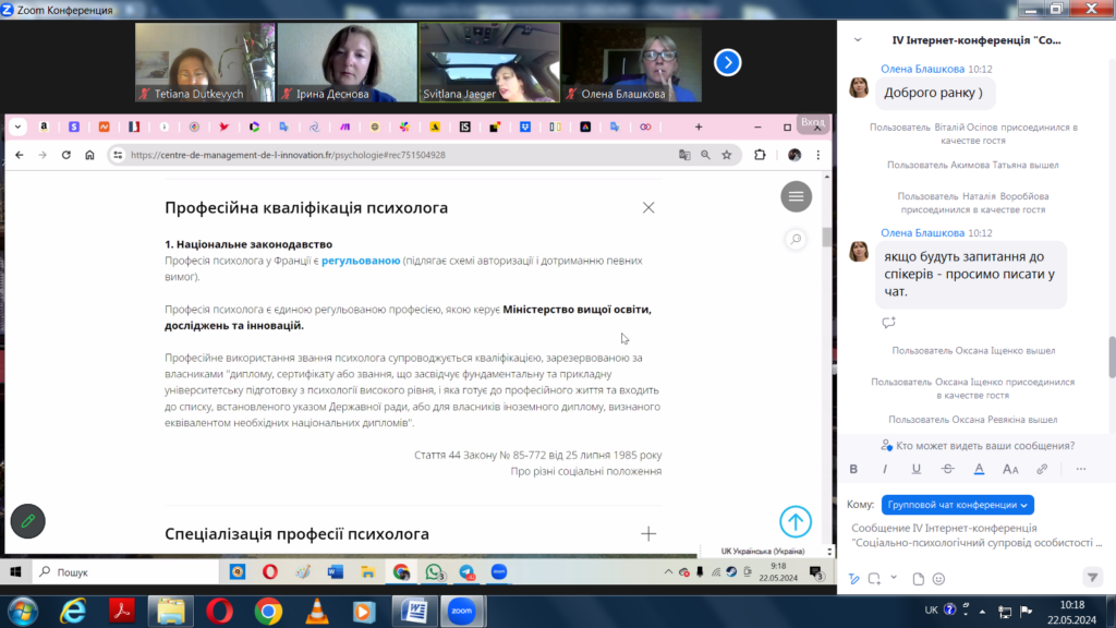 Кафедра психології освіти виступила співорганізатором ІV Інтернет-конференції «СОЦІАЛЬНО-ПСИХОЛОГІЧНИЙ СУПРОВІД ОСОБИСТОСТІ В УМОВАХ ІНТЕГРАЦІЇ УКРАЇНИ В ЄВРОПЕЙСЬКИЙ ПРОСТІР» (з міжнародною участю), яка відбулась 22 травня 2024 р. на базі Маріупольського державного університету. Одним зі спікерів пленарного засідання виступила завідувач кафедри психології освіти, професор Тетяна ДУТКЕВИЧ. З пленарним засіданням можна ознайомитись за посиланням https://www.youtube.com/@user-ky5ng8iy7n.