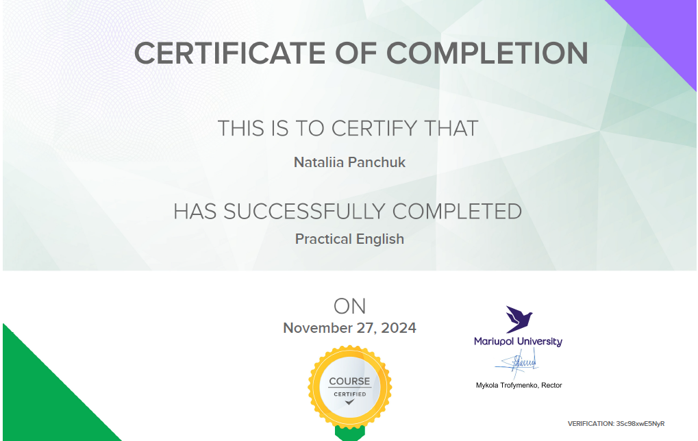 English4Ukraine від Маріупольського державного університету та отримала сертифікат